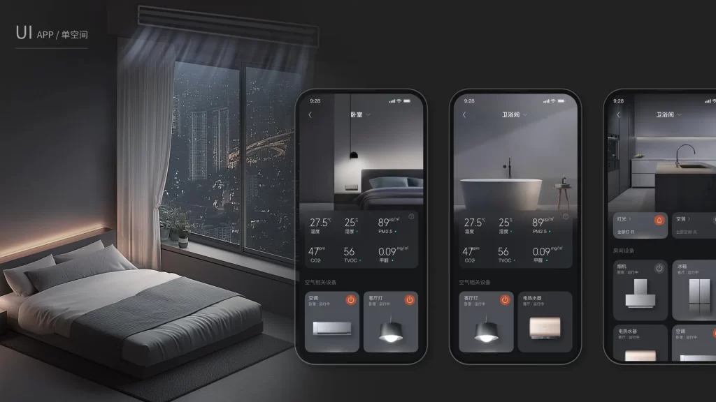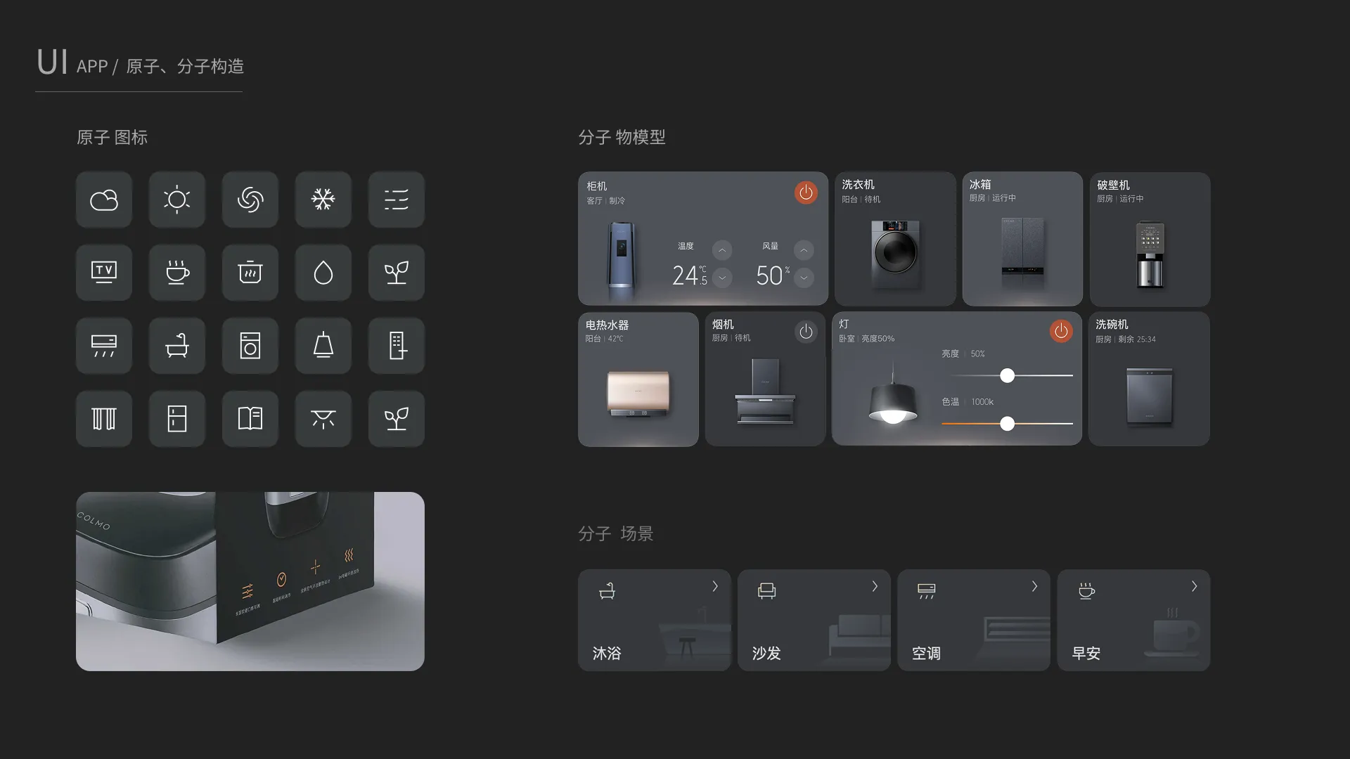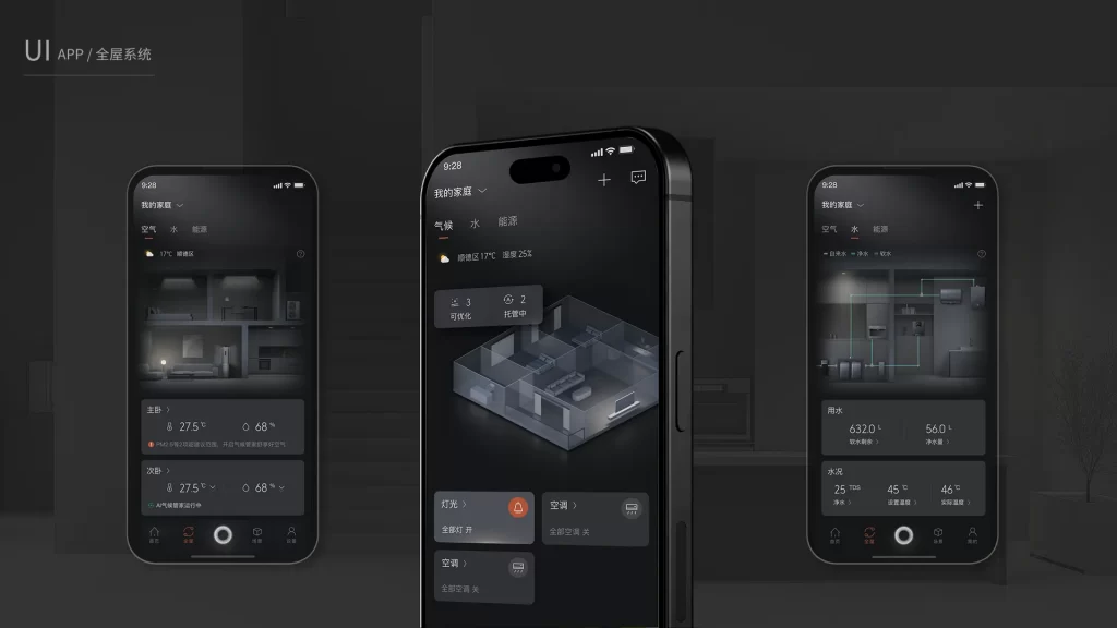 COLMO 手机端APP2.0,联动全屋智能设备场景,打造便捷舒适的智慧生活。相对于1.0版,全屋设备管理焕新升级。全新空间视觉设计,管理更直观高效。全新个性化首页,随心智控,打造专属体验,新增全屋系统管理,环境质量数据、实时展示全屋空气信息。